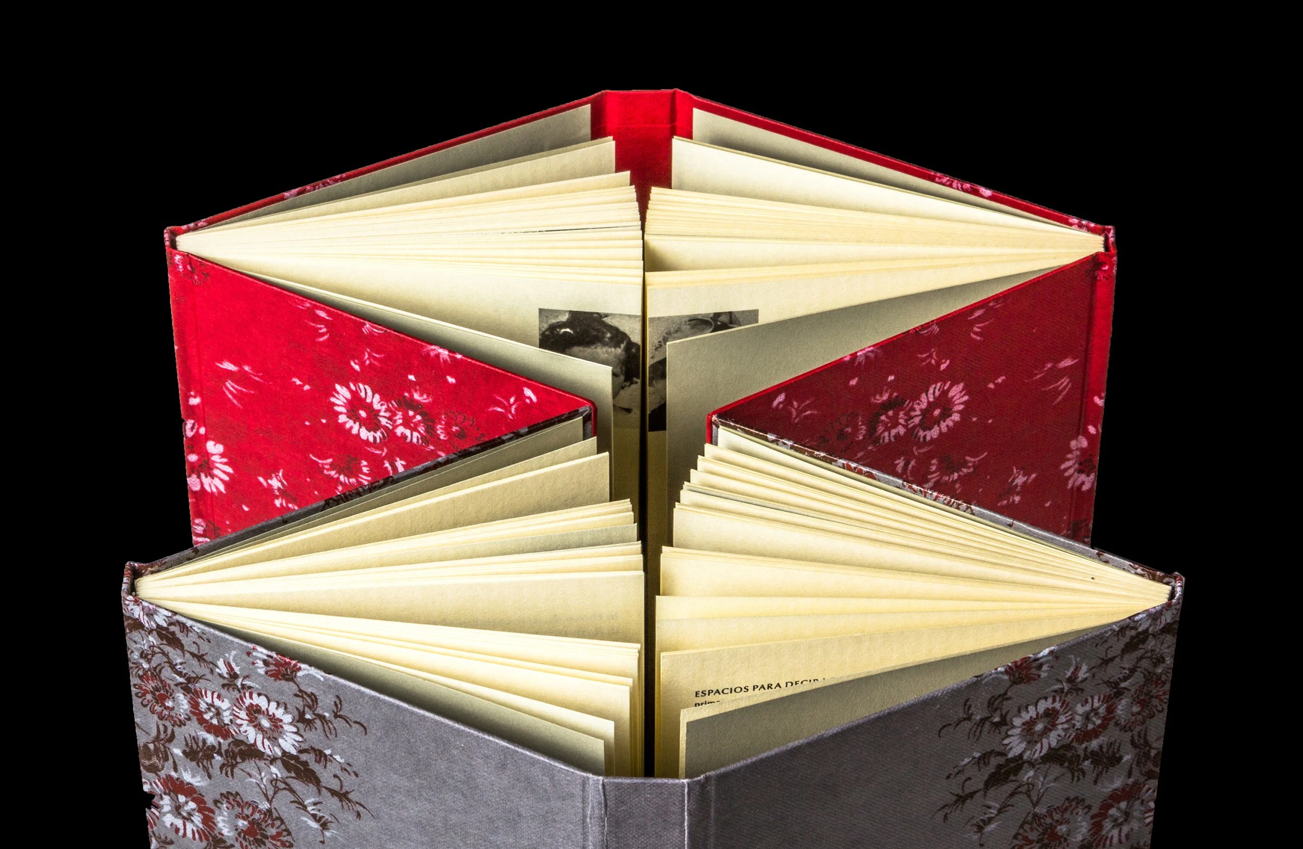 This book is based on the binding of a 1765 Bible that opens like a “French door,” evoking domestic and household themes that are featured in the author’s work. It has a third spine added in the middle, so both volumes can be read at once, in “scriptorium mode,” or articulated to read each language individually. This edition comprises two volumes in a box, clothbound, with three square spines, three Pantone inks for the cover, with a hand-tipped photo.